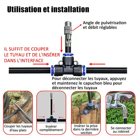 Notre système d'irrigation automatique par pulvérisation peut non seulement réaliser une irrigation automatique, mais également vous aider à économiser de l'eau et du temps et à gérer facilement le jardinage quotidien.